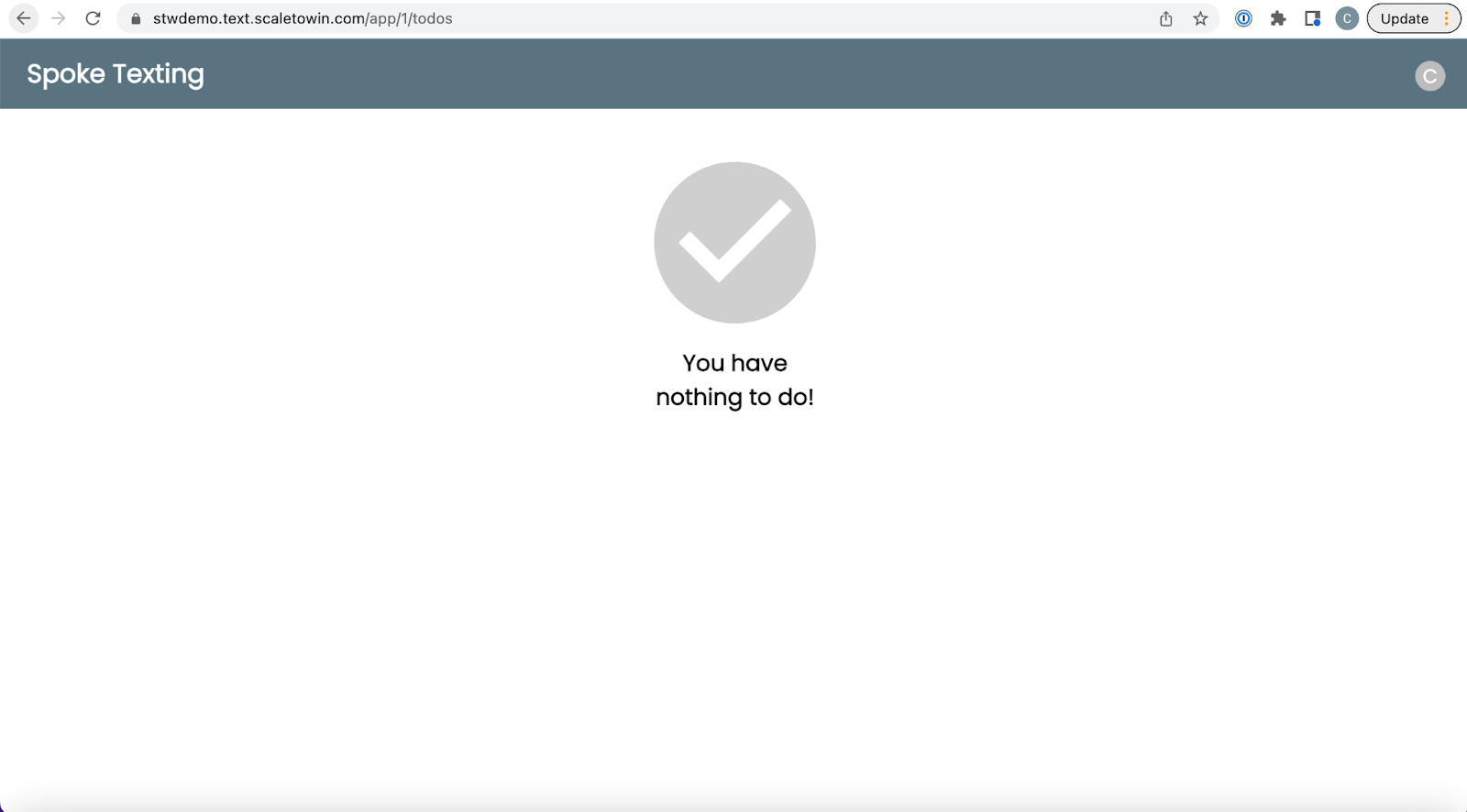 Once you’ve signed up, you’ll see the texter homepage. This page will say “you have nothing to do”.