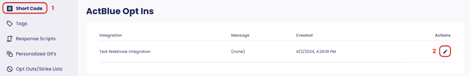 Go to the ActBlue Opt Ins section of your Short Code page.