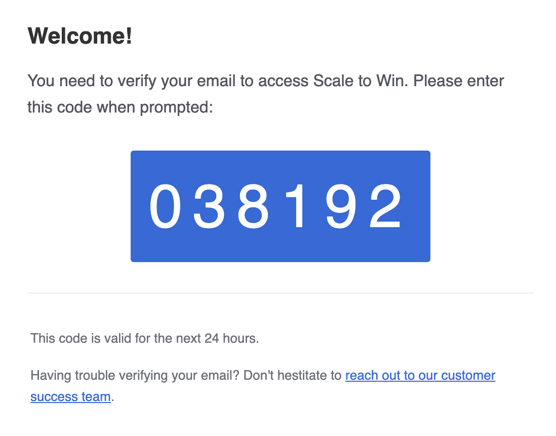 4. After clicking Sign Up, please verify the email address used to create your account. This email can take a few minutes to arrive, and will be from hello@scaletowin.com.